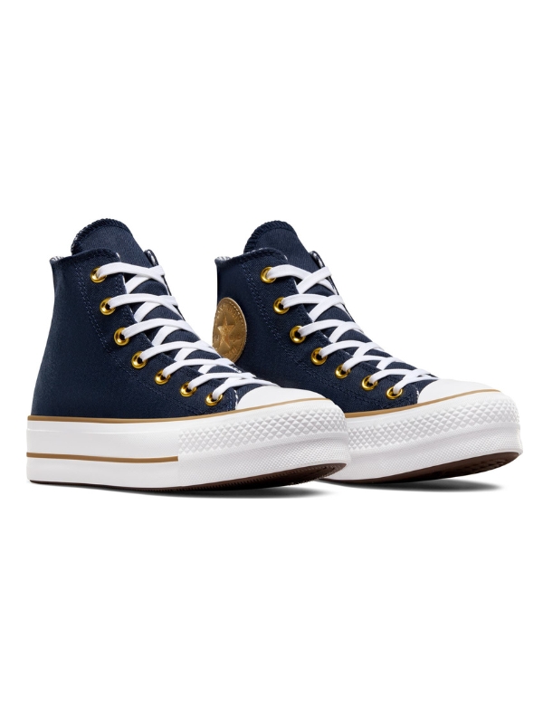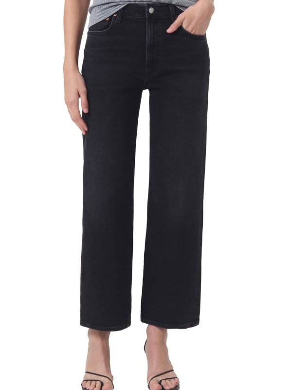 The high-top black and white canvas sneakers are the ultimate reference to classic design with a contemporary twist, and they look great with these jeans.