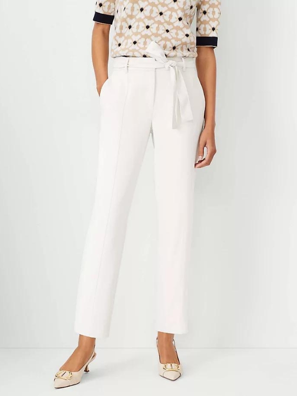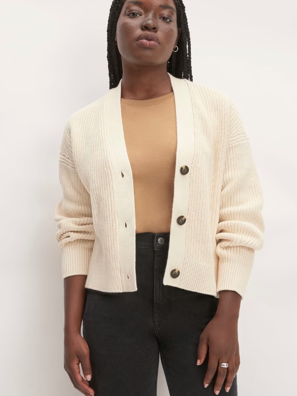 When you can stand out, why blend in? This is the recipe for a fashionable and relaxing outfit: A ribbed ivory cardigan with clean, ankle-length cream slacks, unbuttoned carelessly to show off a touch of the soft shirt below. It’s the go-getter’s uniform of today.