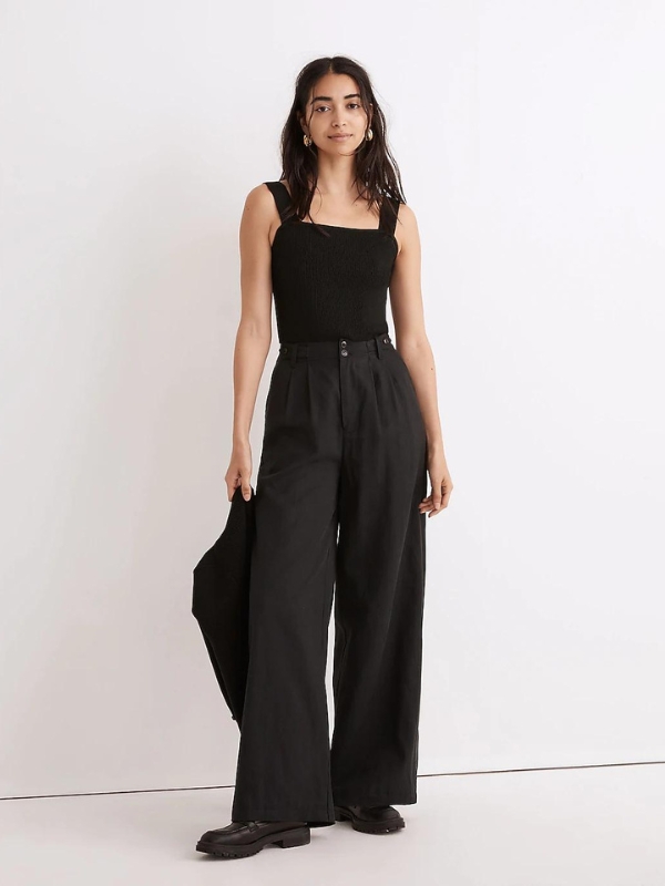 This ensemble’s subtle refinement and adaptability make it so beautiful. It’s the perfect option for sporting work attire since it looks sophisticated and allows easy daily mobility. With accessories, the neutral color scheme provides a blank canvas for individual creativity.