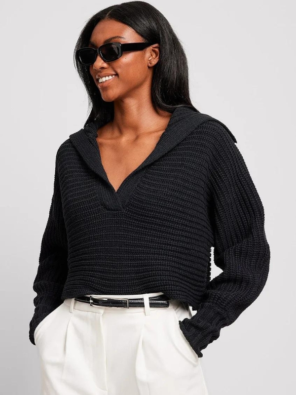 Improve the way you work out with this fantastic outfit. Consider donning an elegant black pullover with straight-leg trousers that go well together. The sweater has an oversized fabric, a round collar, and fashionable long sleeves. The pants’ stylishly cut length gives your athletic look a modern feel.