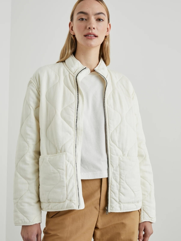 Do you yearn for the ideal combination of polished authority and urban cool? Your key to winning the style game is this outfit. We’re talking about a black button-up shirt worn over a textured ivory quilted jacket tucked into fitted black pants. This pairing perfectly strikes a mix between polished sophistication and savvy street cred.