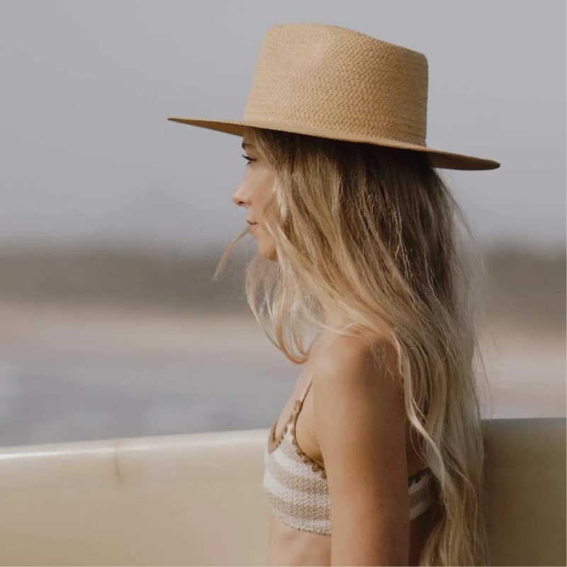 The Will + Bear Sawyer Sand Hat is another unisex hat that is perfect for beachwear. The hat features lightweight zigzag weave with stitching. The wide brim is stiff so it looks structured and stylish on both men and women.