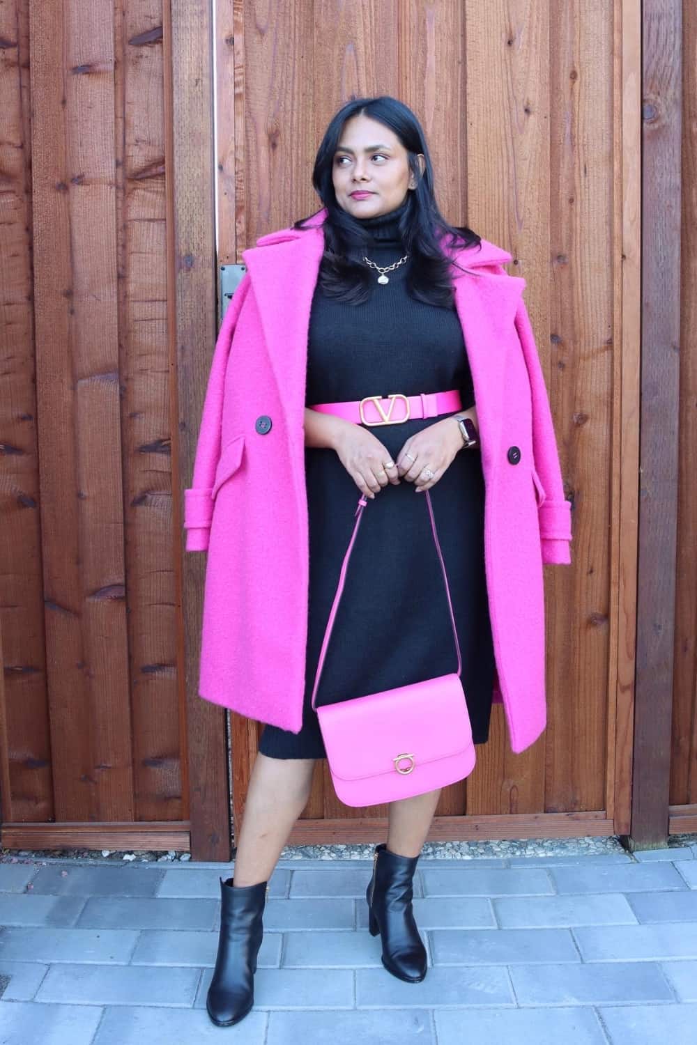 Fuchsia Coat + Belt + Ankle Boots