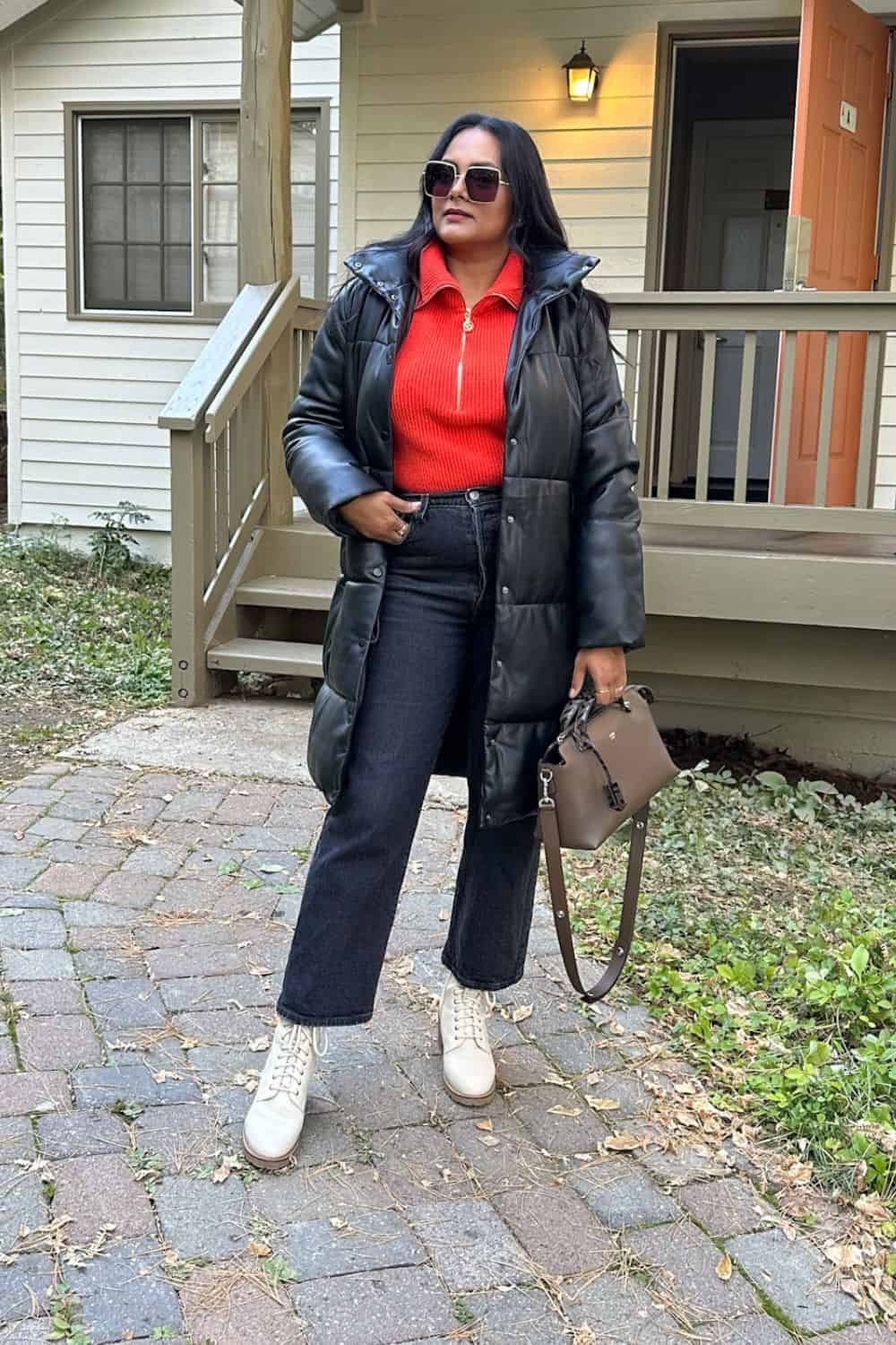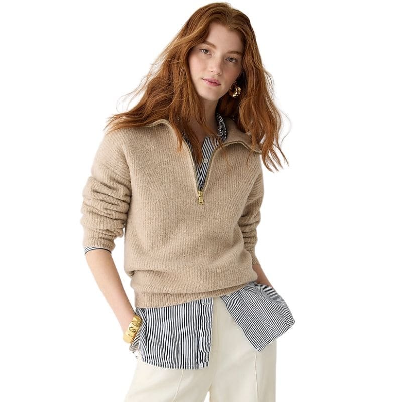 Half zip sweaters are great for extreme cold weather because you can wear a base layer under it. They have always been really popular with men, but you can also see women rocking them in so many ways. They look sophisticated and elevate the straight leg jeans winter look.
