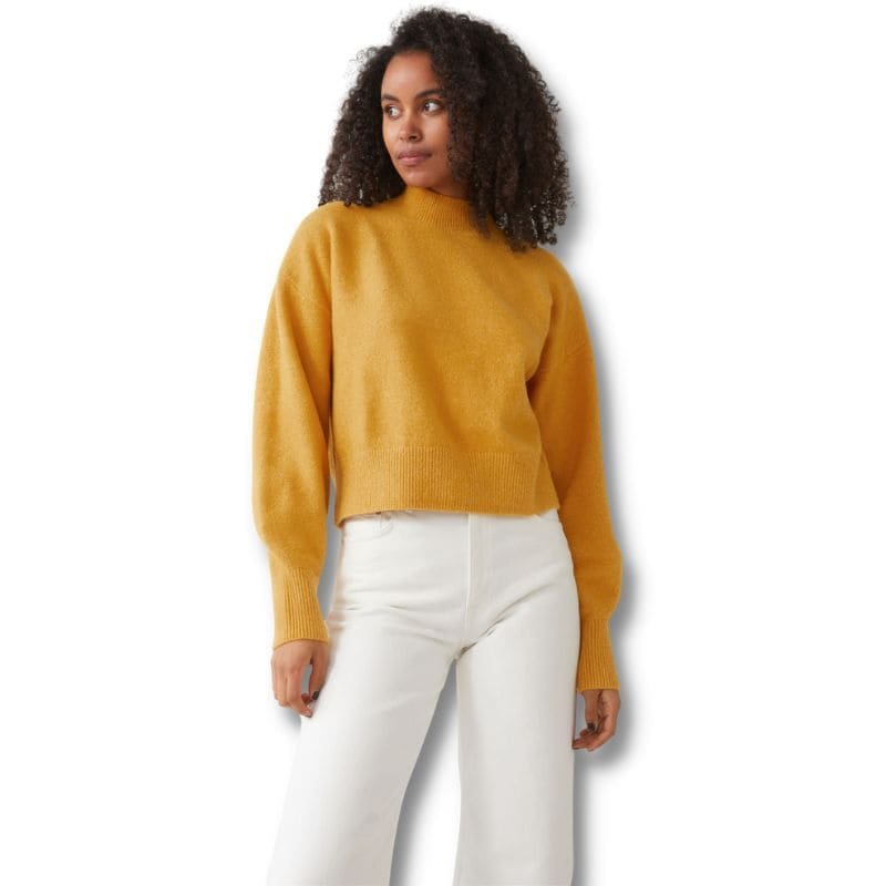 Mock neck sweaters don’t have too much extra fabric around the neck compared to turtleneck and are really easy to wear. If you pick a fitted one, it gives you the same effect as a turtleneck but less uncomfortable.