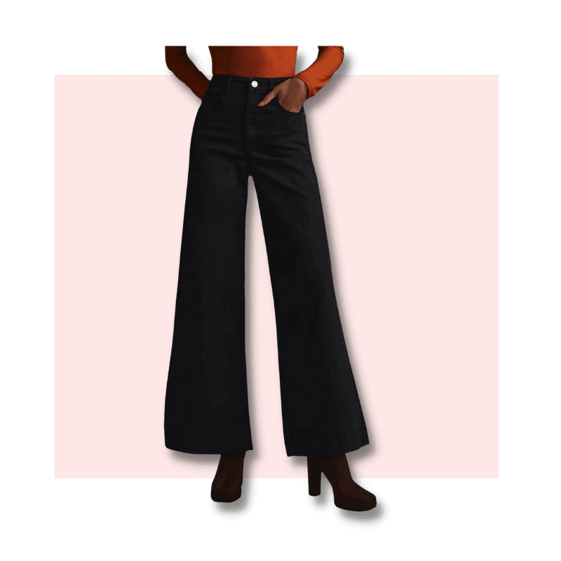 Whether you are skinny, straight figure or have an hour glass body type, wide leg jeans look great on every one. They instantly dress up your outfit. For me black wide leg jeans are an essential because they look so stylish and create an hour glass shape because of the wider leg style.