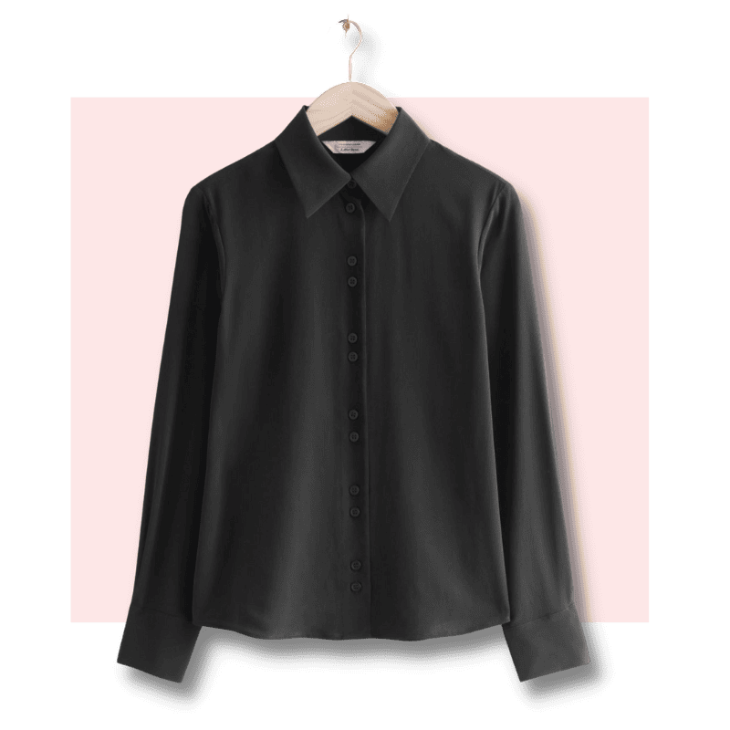 While a white button down shirt would be great for day time outfits, a good quality black silk shirt would be great for night time looks as well. But you can also wear it during the day with casual bottom to look chic and laid back.