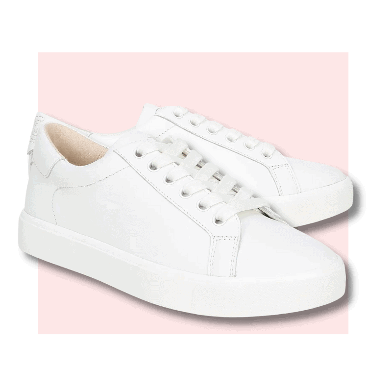 When you are picking white leather sneakers, pick a low top that you can wear not only with jeans but with dresses and skirts.