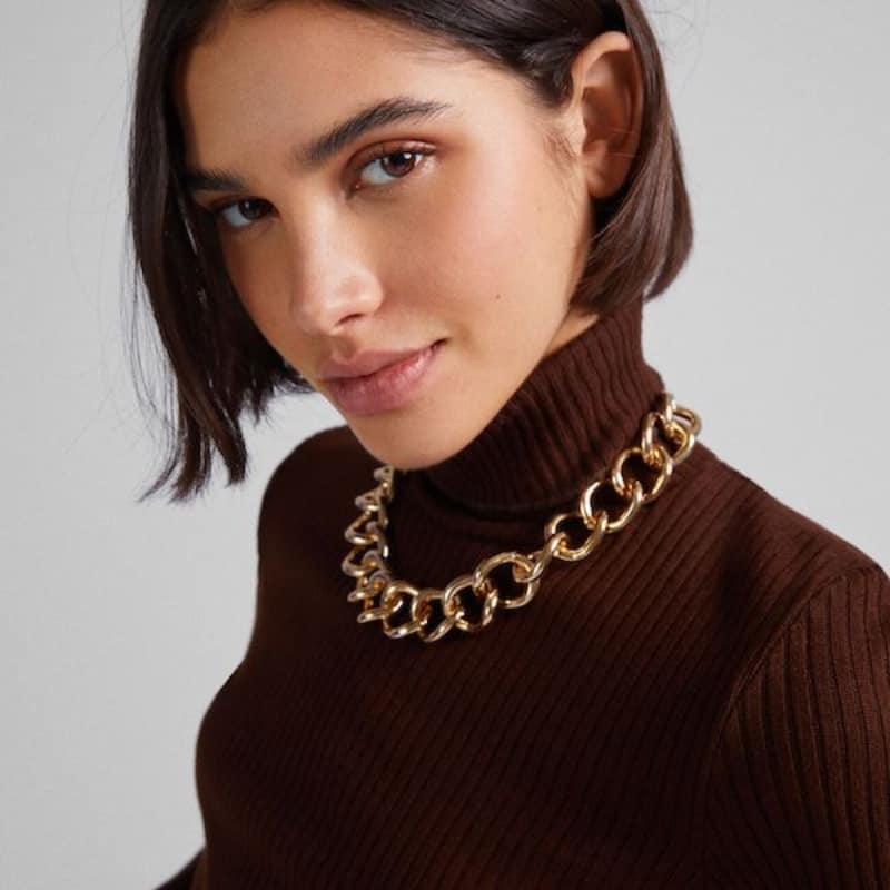 But if you want to make your chunky turtleneck look polished and sophisticated, try wearing a thicker chain instead of a really skinny chain.