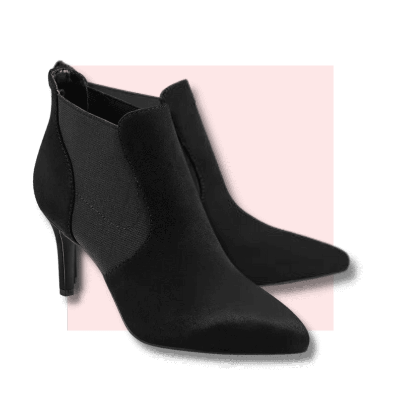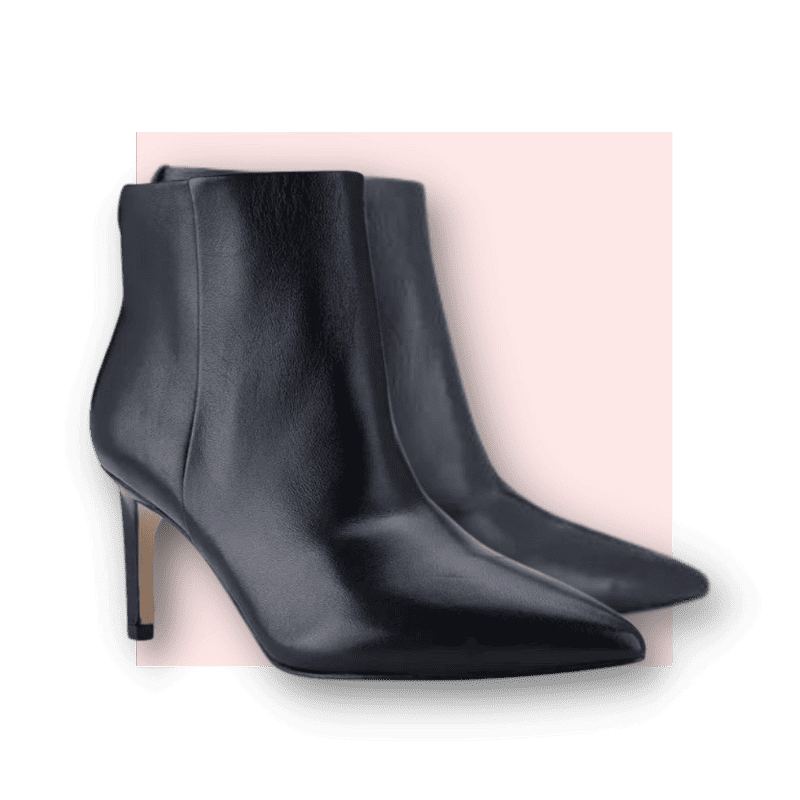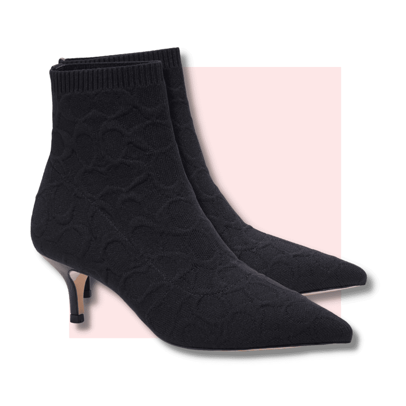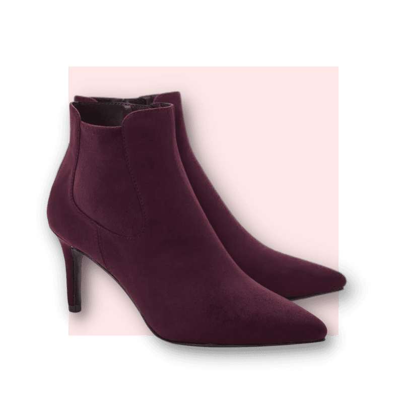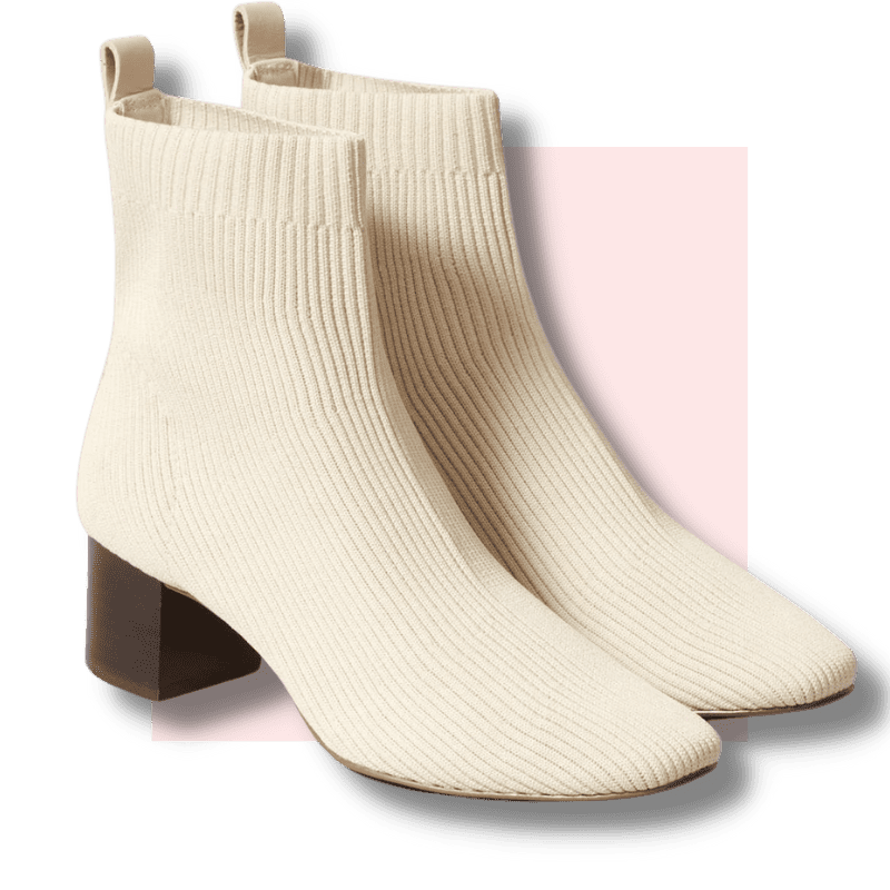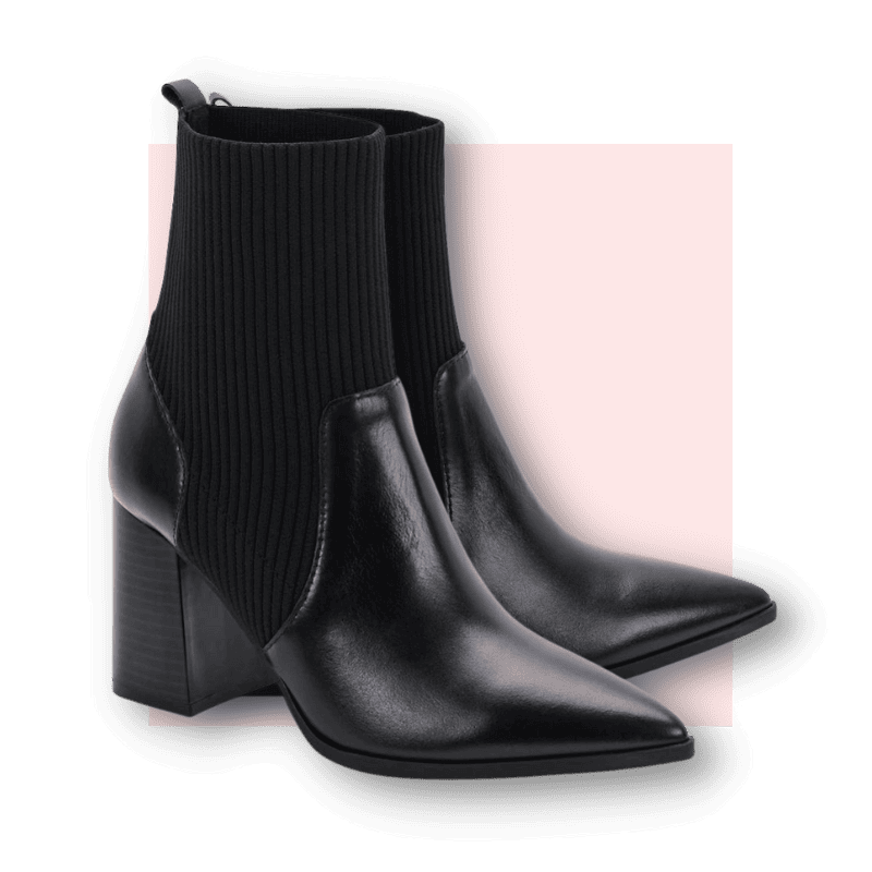 The kitten heels are a really comfy version of heels you can wear, but the sock style booties will make your legs look leaner.