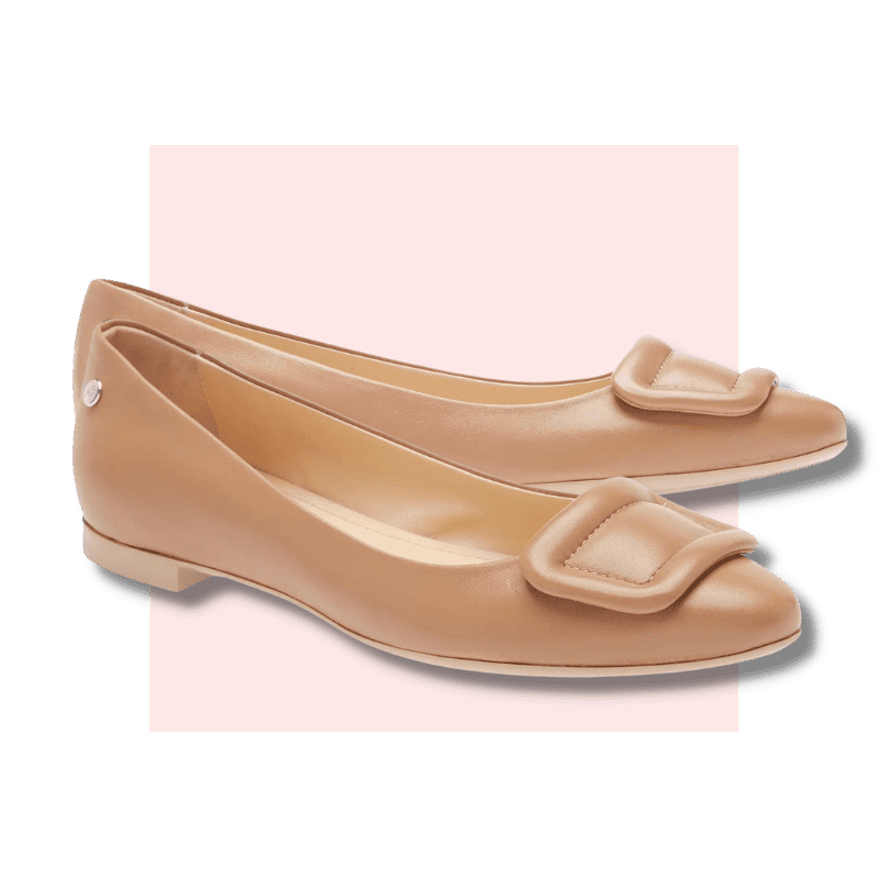 These are perfect flats with this flow satin midi skirt to create more structure and a great way tp tone it down. Don’t forget to wears her nude tights.