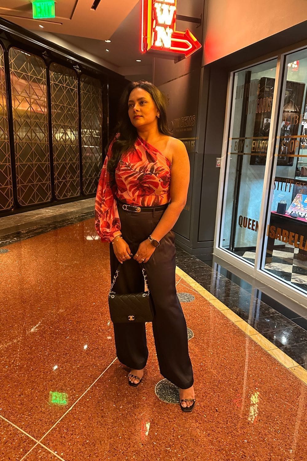 Going out in Vegas is so much fun! This outfit transitions well from dinner to drinks, making it perfect for a night out in Vegas. Start with a pair of black trousers, which are versatile and can be dressed up or down. Then add a pop of pattern with a one-sleeve top – this shows off some skin while still being sophisticated. Finish off the look with some strappy sandals for ultimate comfort as you walk around the strip.