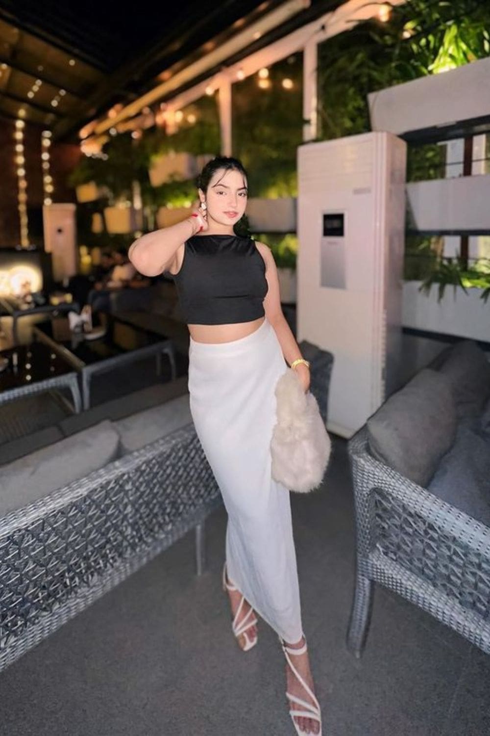 If you prefer a two-piece set, this maxi skirt and crop top combo is the way to go. The flowy maxi skirt adds a touch of elegance while the crop top shows off some skin for a more flirty vibe. Paired with some simple heels, this outfit can be dressed up or down.