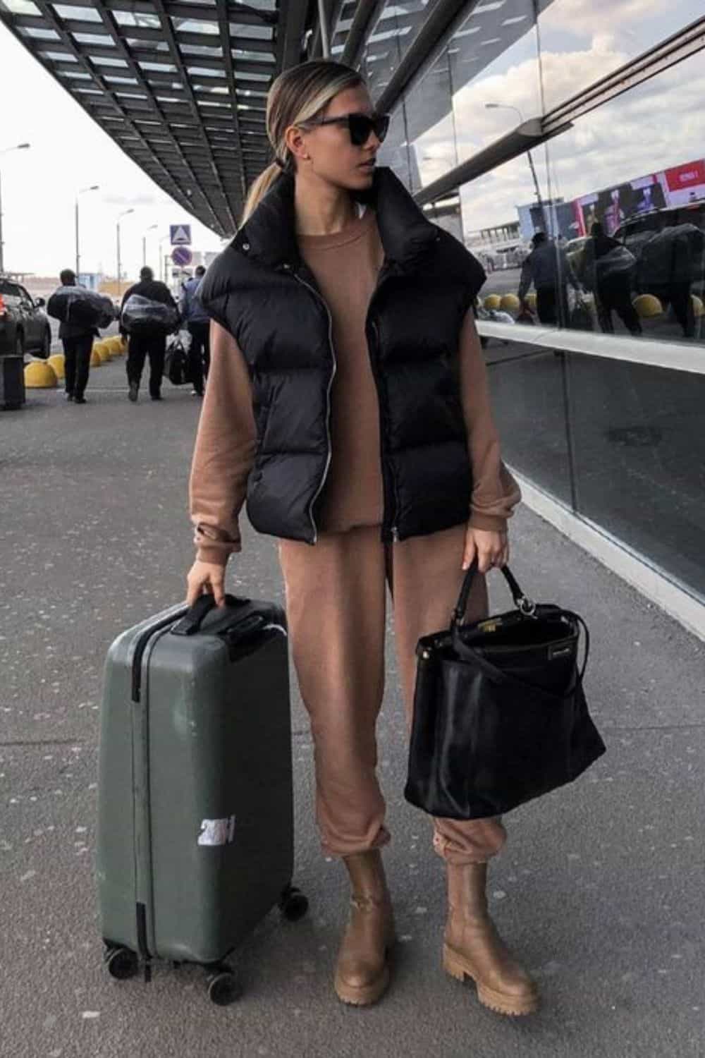 This airport outfit is perfect if you are headed to a ski resort. You can wear your base layer outfit with a puffer jacket so you are ready for the snowy weather.