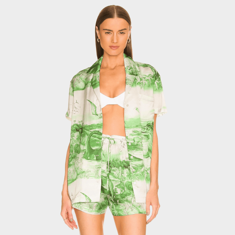 Another great way to cover up your bikini is by wear a matching shirt and shorts. This is a genius design innovation that is functional and looks really cute.