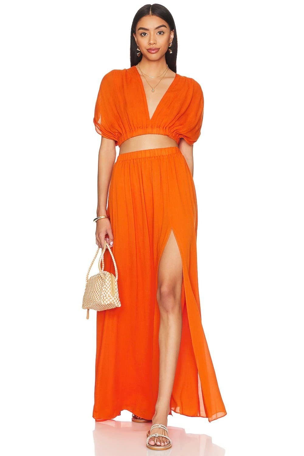 The satin feels flowy and fresh. The outfit will look effortless and elevated. Pair it with a cute top or even with a shirt and tie it on the front to make it beach resort wear and you have a look.