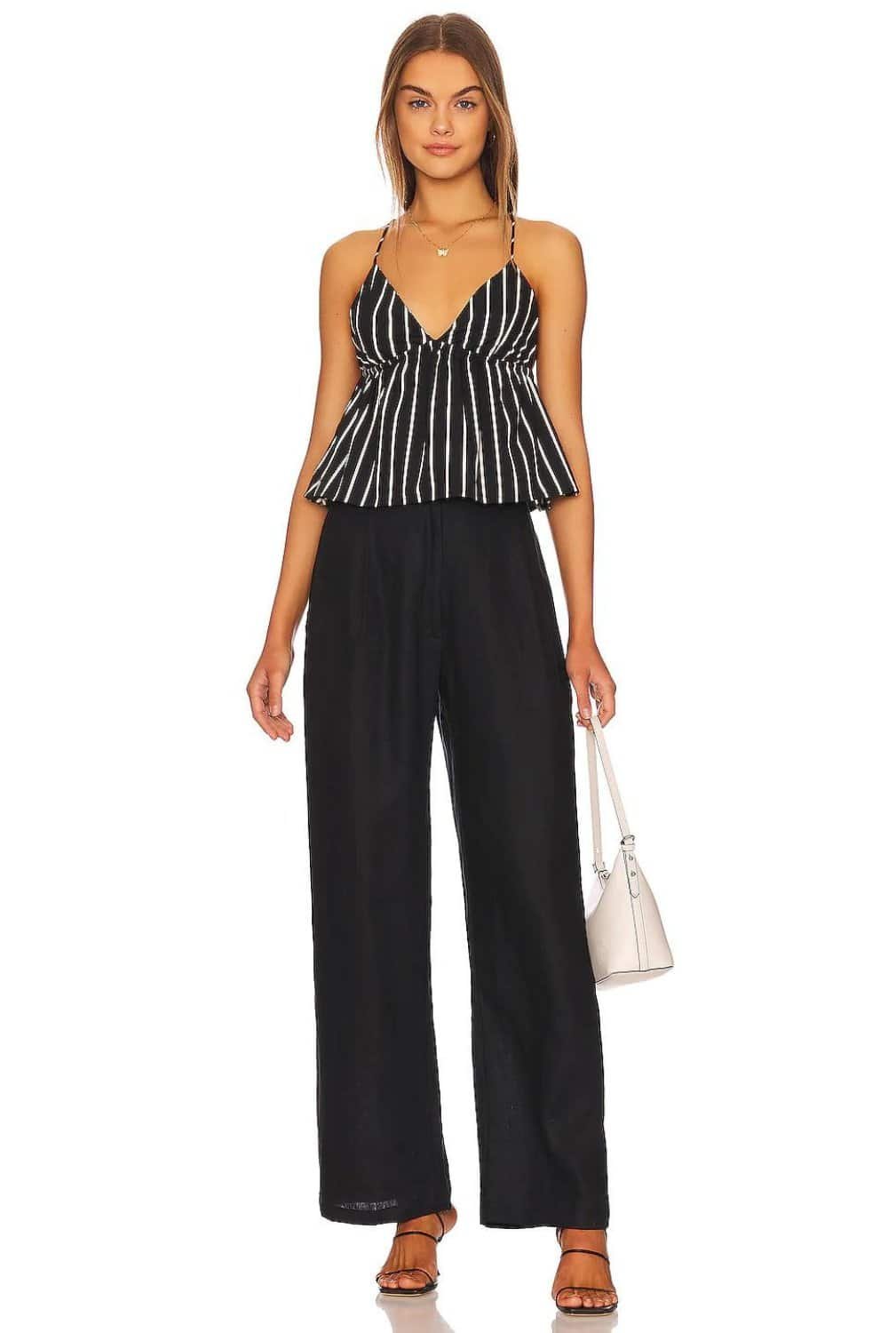 And they look like black trousers. All you need are cute tops to pair with the black linen pants and you have a structured yet really comfortable outfit. And by swapping the tops, you can create so many different looks.