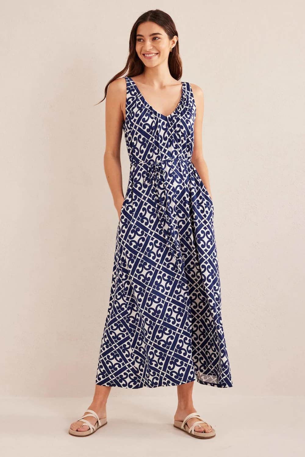 Consider picking a printed Ankle length dress. The ankle length is the most comfortable length. Which means you can wear them with flats and heels. And they are easier to manage.