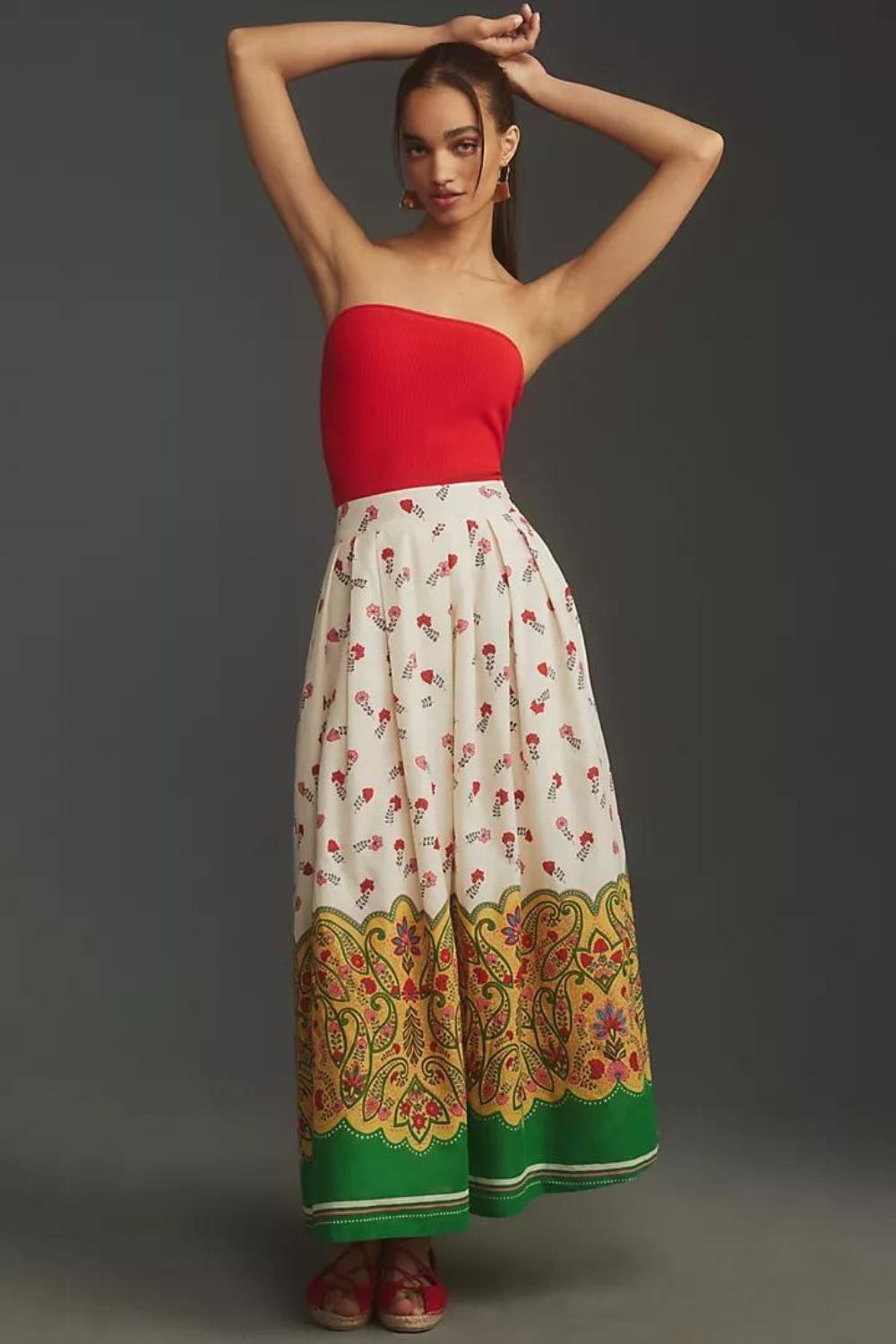 Let me tell you why it is added and why it is one of the lists to consider on your BBQ day. It’s all about the flow and the print. The maxi length provides a beautiful, sweeping shape that moves gracefully with every step you take. The floral and paisley patterns add a touch of whimsy, while the rich border colors ground the look, making it both eye-catching and harmonious. The high waist accentuates your natural curves, creating a flattering fit for all body types.