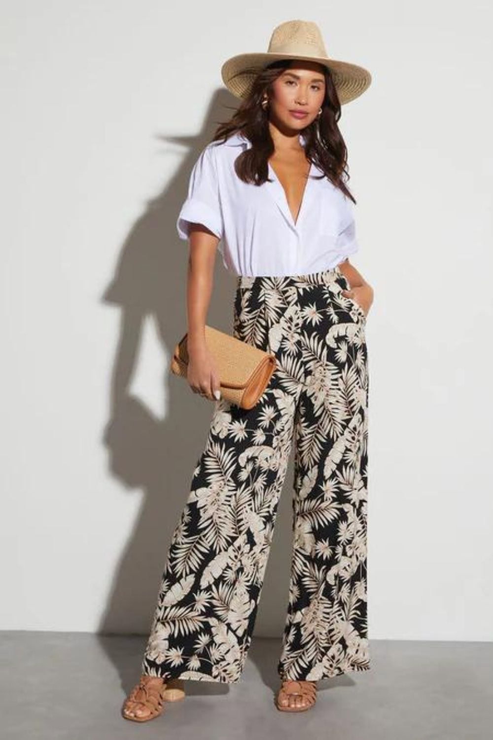 Ensure the palazzo pants fit well at the waist and flow nicely over your hips. Be mindful of the length – you want the pants to graze the floor without dragging, so consider your footwear when choosing the right size. Avoid overly busy supplements; the geometric print is bold enough on its own.