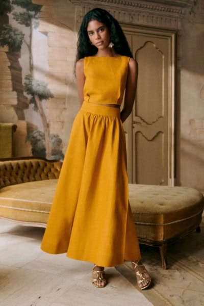 Add a cotton or linen maxi skirt in any color. You don’t need to go that bold, if you don’t like it.