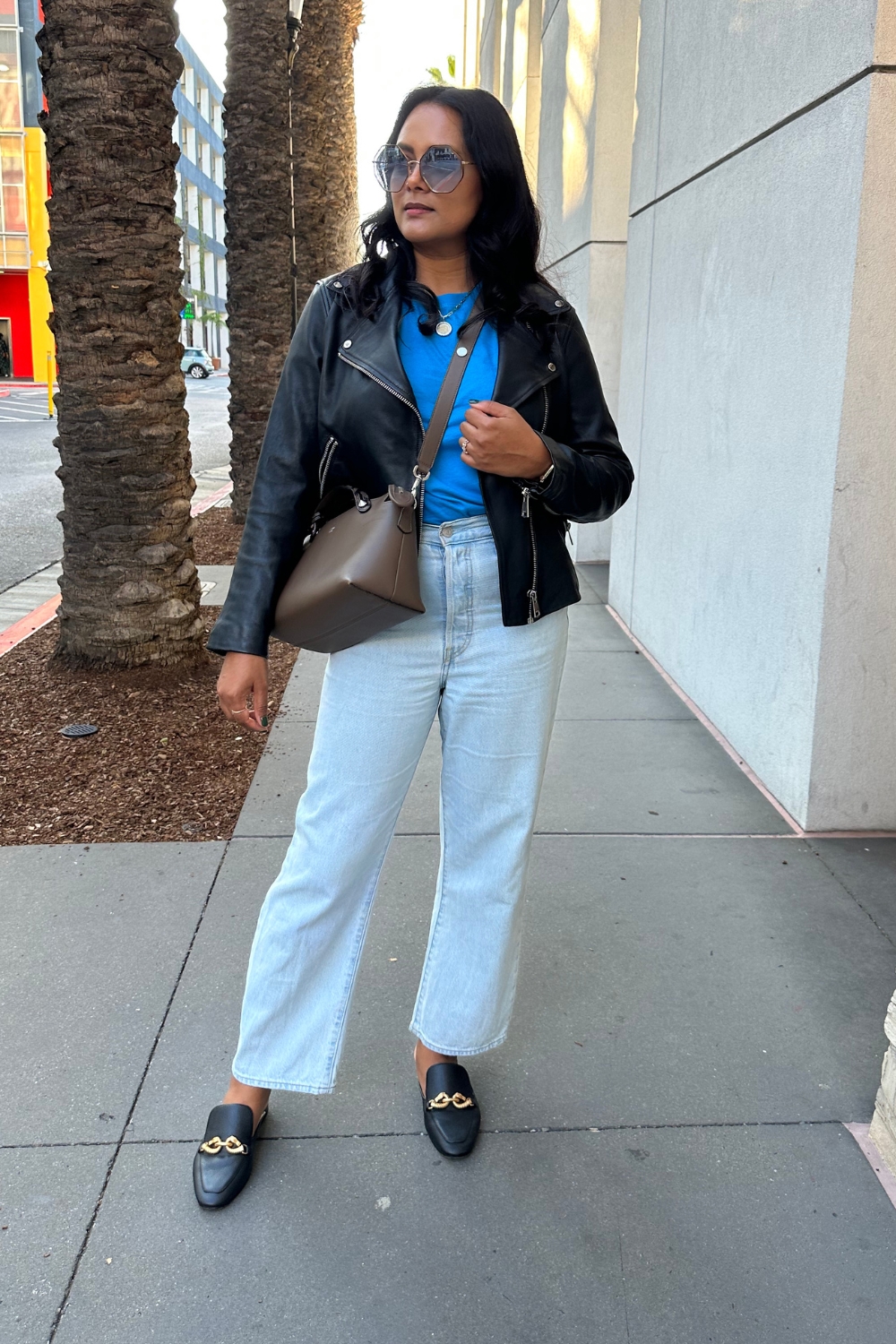 Love a good black leather jacket, but your outfits turn out looking too edgy or probably the same every time you wear it. In this post, I am sharing what to wear with a black leather jacket from everyday wear to work so you feel stylish and confident.