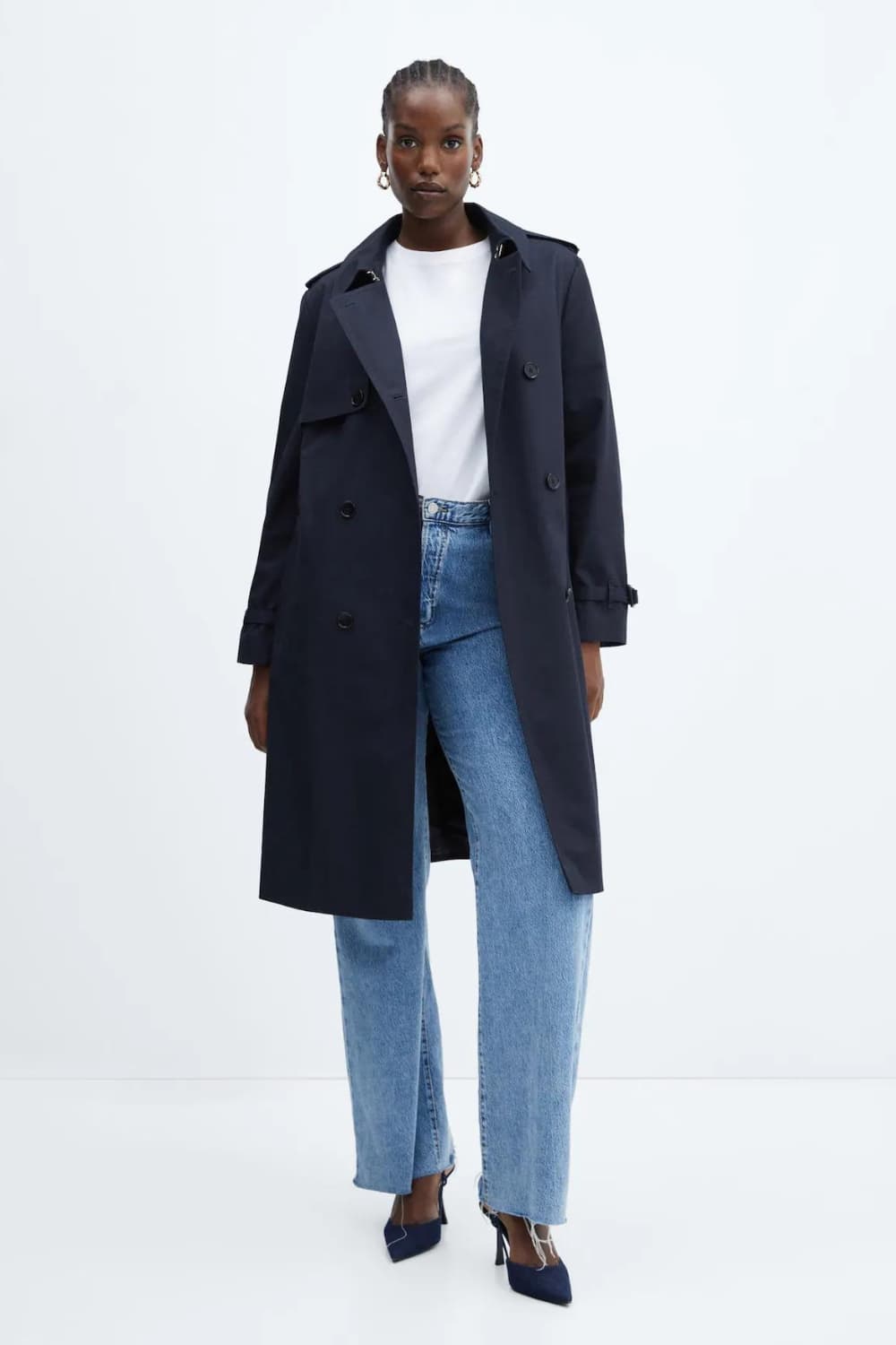 A very lightweight option like the Mango Classic Trench Coat with Belt made with quality cotton, is the ‘just right’ addition for extra warmth. As the weather changes you can swap the crewneck with a cashmere turtleneck sweater can peep out as an underneath layer with trench coats that feature a belt.