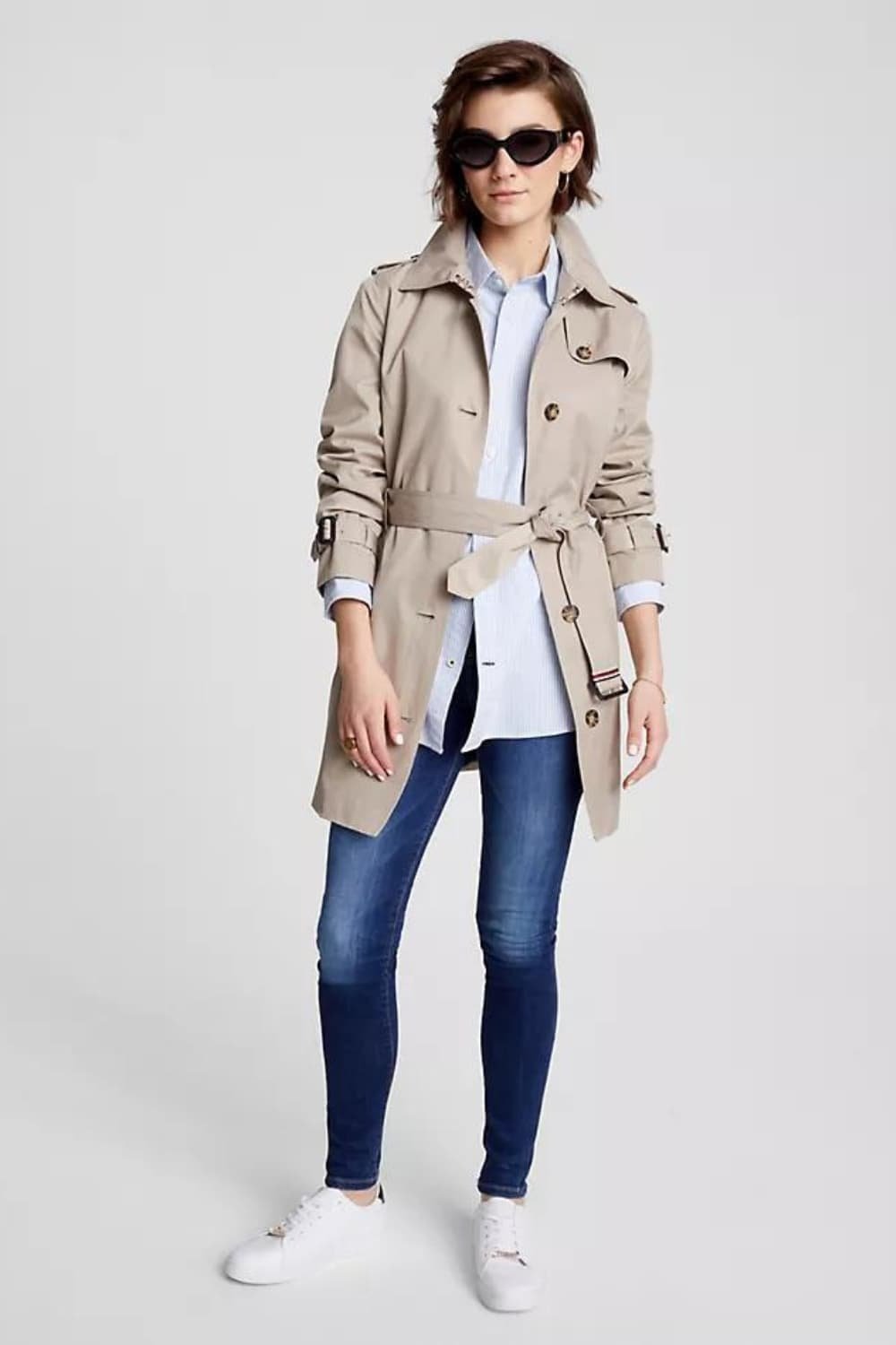 The best part about a short trench coat is that it compliments a loose style outfit just as well as a fitted outfit. Again, anyone can pull off a short length trench coat, but for the short and petite, this is wardrobe gold. For the fitted look, this short trench coat is made for upgrading your skinny jeans.